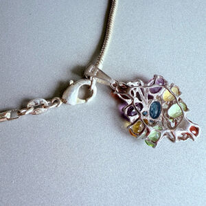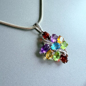 Multi Color Natural Gemstones Cluster Confetti Sterling Silver Pendant N…