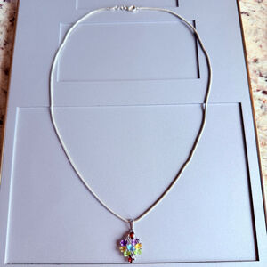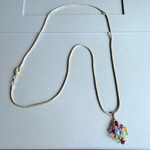 Multi Color Natural Gemstones Cluster Confetti Sterling Silver Pendant Necklace