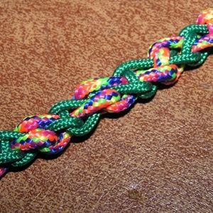 New handmade in Montana multi color para-cord survival bracelet 7.5 inches in length 1/2” in width with black plastic clip. Custom colors and sizes are available. We also make equestrian items i.e. : Reins, wither straps, stirrup hobbles, tie down straps, halters and girth connectors. We do custom cat and dog collars as well! Please be sure of the size style and colors as I do not offer exchanges refunds or returns. Bundle three or more items and save.
