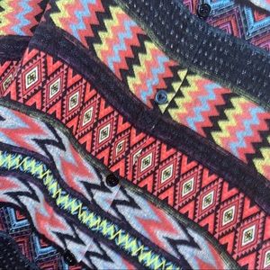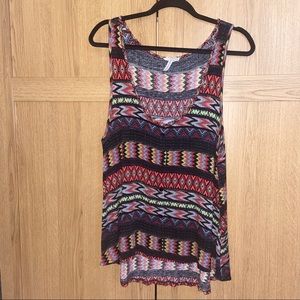 Multi color patterned tank top with decorative buttons down the front. Worn with a lot of life left. Great condition. Size L