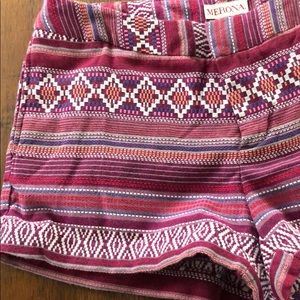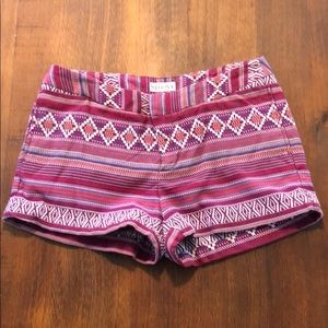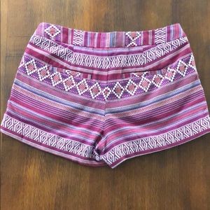 Pink/Multi colored printed shorts, Merona brand size 4. Front pockets are sewn closed to lay flat. Only worn once or twice!! Inseam is approx 2” outer sides of shorts measure about 11”