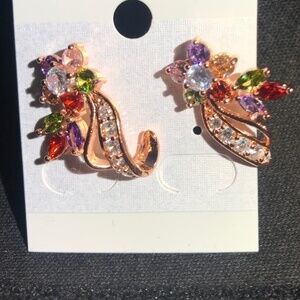 Multi Color Rhinestone & Gold Color Earrings