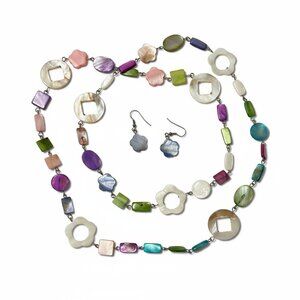 Multi Color Shell Bead Slver Tone Finish Long Necklace And Earring Set
