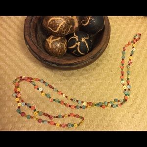 This light and colorful Spring necklace is made of dyed shell beads and glass. Since it is so long, it can be worn many ways, even as a bracelet. Perfect to wear on your next beach trip or as you are dreaming of your next beach trip!