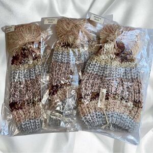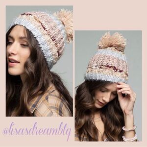 New! Ultra soft plush pom pom warm beanie winter hat with multi colors of pink, blue, cream and ivory.