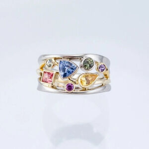 Multi Color Stone 925 Silver Ring for Women, F032 (LIMITED EDITION!!)