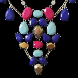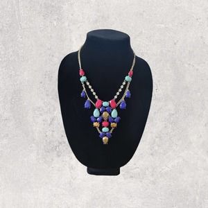 Multi Color Stones Faux Diamonds Gold Color Chain Fashion Necklace