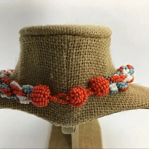 Multi Colored Multi Strand Woven Braided Twisted Seed Bead Necklace. Orange red color with white and blue. It attaches in the back. Nice statement necklace. See pics for conditions. No Modeling or trades. P83