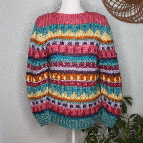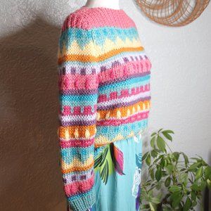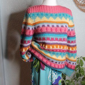Multi color strip sweater. Vintage circa 1980's by Ohrbach's. Soft sweater, no snags, no tears. This item has been so well taken care of, it could be mistaken for new. Tag size Medium. A true rare vintage find.