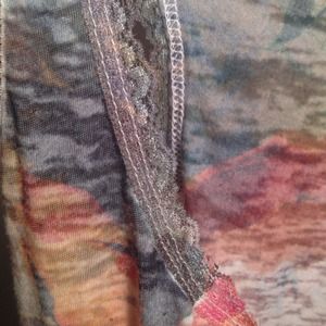 Multi Color tank top. Racer back. Lace out line on shoulder and chest. Worn once.