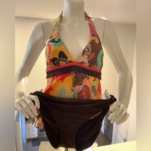 Woman’s Multi colored tankini tom with brown bottoms . Size Medium.