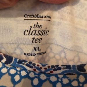 The Classic Tee from Croft & Barrow. Great print in blue, beige, coral, pink wine, black and white ...perfect for these warm summer days!