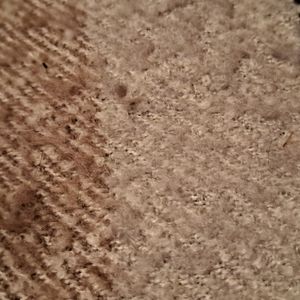 Pink, white, blue, gray blanket. There is "pilling" all on it. Though I think it's supposed to kinda have that look. It is so soft and light. Gentle wear, no damage/stains. 100% polyester