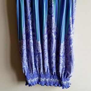 Beautiful blue/purple floral design tube top. Elastic top and elastic bottom. Neck string. Size S/M Like new condition