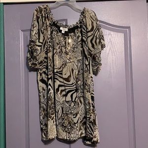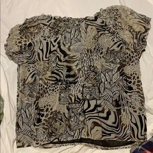 Worn as a work shirt, perfect for haul was casual! In great condition, has an sheer black under layer, bundle to Save on shipping!