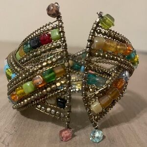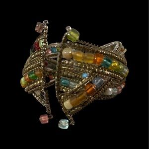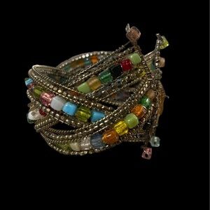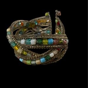 Multi Colored Beaded Cuff Bracelet Retro 90s Bohemian silver fash jewelry