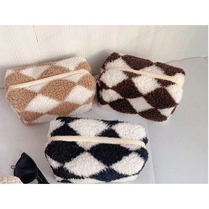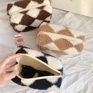 Beautiful, fleece toiletry/cosmetic bag featuring a checkered pattern. The perfect gift or if you've been wanting a new travel item!
