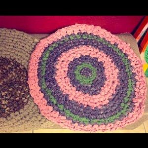 This circular crochet rug is made out of Cotten fabric in the colors of pink, green, and navy! Perfect for those rainy or sunny days in the pool. You don’t want your floor to be soaking wet!