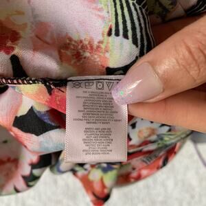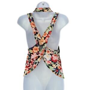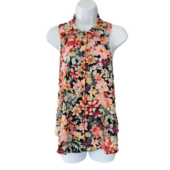 This vibrant multi-colored flower tank is a stunning addition to your wardrobe, featuring a beautiful floral print that exudes charm and elegance. The tank's design includes a stylish criss-cross back, adding a touch of sophistication and modern flair. It buttons up to the neck, offering a secure and polished look. Perfect for warm weather, this versatile piece pairs well with jeans, skirts, or shorts for a chic and effortless outfit.