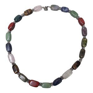 Multi Colored Gemstone Bead Necklace Tigers Eye Jade Polished Stones HEAVY 19"