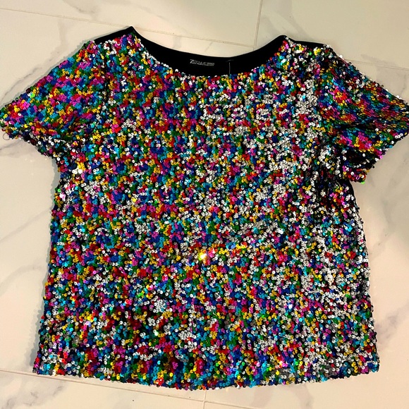 ๐๐๐๐๐งก Super cute multi colored festive sequenced top. Solid black in the back. Great for the holidays. Never worn.