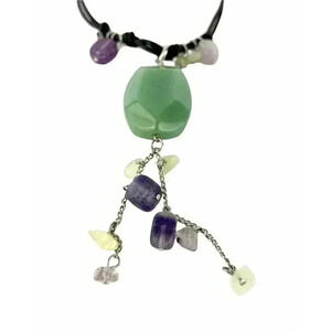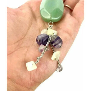 Multi Crystal Aventurine Quartz Pendant Cluster Necklace Natural Stone 13"