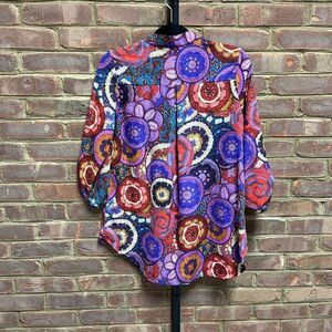 Multi Design V Neck Quarter Sleeve Top Size Large