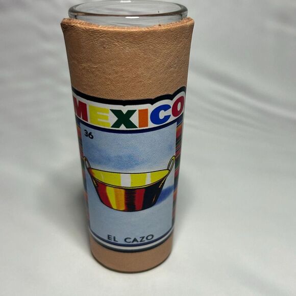 Loteria Shot Glass- El Cazo- Handcrafted Mexican Leather- Home Decoration