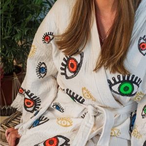 Multi Evil Eye Kimono Robe. Made of Premium Quality finest Turkish Cotton which had been grown since ancient ages.