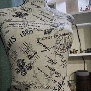 A stunning multi-faceted clear glass beaded necklace from Unsigned. The silver tone chain is adjustable from 18-22". The solid pattern and glass material combine for a dazzling effect.