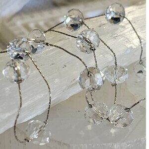 Multi Faceted Clear Glass Beaded Necklace Silver Tone Chain Adjustable 18-22"