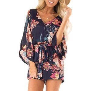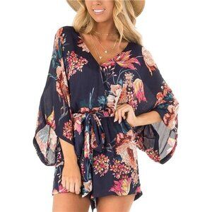Look like you were handpicked from heaven with this gorgeous printed romper! Featuring a flirty, multicolor floral printed chiffon and ruffled hem. V-neck bodice and belted waist to cinch in your waistline. Lightweight, long flare sleeves. Relaxed shorts that give the illusion of a skirt. Zipper closure. Leave them dreaming of you with this ultra charming printed playsuit. ❤️
