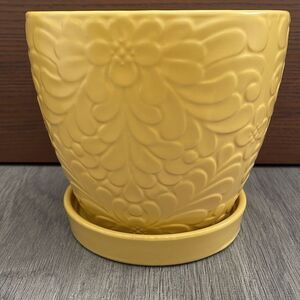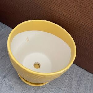 Multi Floral Yellow Ceramic Planter Pot with Saucer Attached