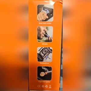 multi function key chain light. with seat belt cutter, whistle, screwdriver, cigarette lighter and flashlight