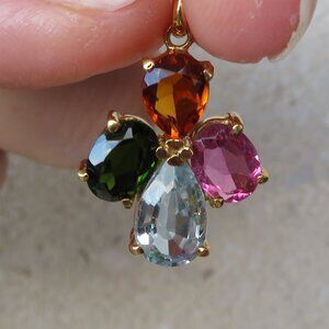 Highest quality clean natural gemstones (tourmaline green and pink, orange garnet, blue topaz).
