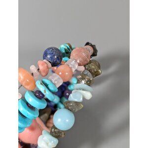 Multi Gemstone Bead Flex Wire Coil Wrap Bracelet 7" Amethyst Quartz