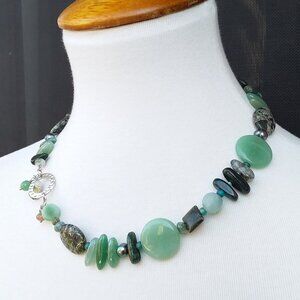 Multi Gemstone Necklace Green Aventurine Agate Pearl 18.5in Custom OOAK