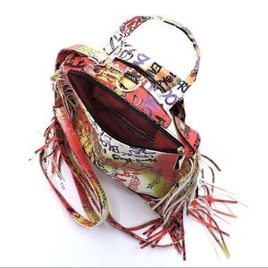 Multi Graffiti Printed Motorcycle Jacket Fringe Backpack Faux vegan leather Zip top closure Gold-tone hardware Detachable shoulder strap L 12.5 * H 13.5 * W 5.5 00LY04200 00532300
