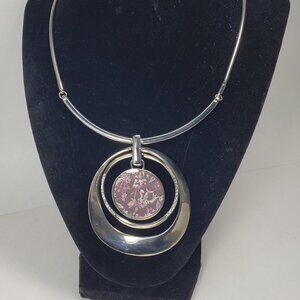 Make a bold statement with this multi-hop flower pendant necklace, elegantly crafted in polished silver tone. This eye-catching piece adds a touch of sophistication to any outfit. NWT