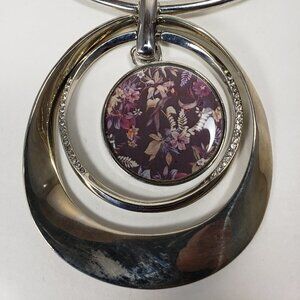 Multi Hoops Flower Pendant Statement Necklace - Polished Silver tone
