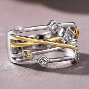 💍 "Multi Layer Glitter Square Shape Zircon Gold StackableFashioUNVN12118