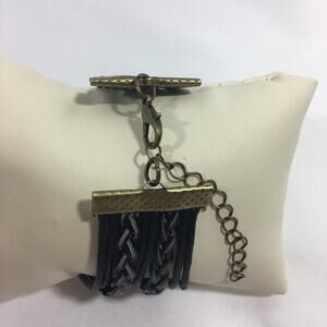 Leather wax cord Multi-layered Braided Lobster clasp Brown/gold Length 6.5" - 8.5" Width 0.8" - 1.25"