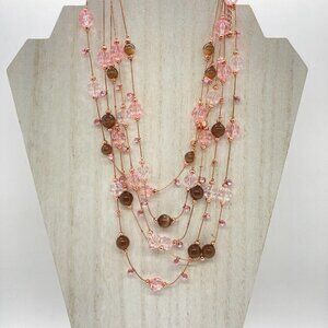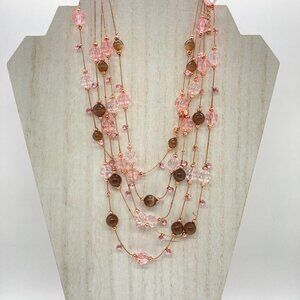 Multi Layered 16" Necklace Moon Glow Rootbeer Brown Pink Dangles Rose Gold Tone