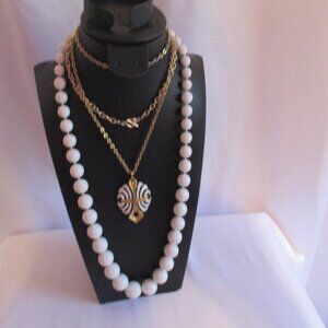 (3) Piece Multi Layered Necklace Lot White Acrylic Beaded Long Gold Tone Jewelry 24 in
