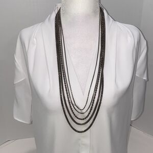 Multi Layered Silver Tone And Gun Metal 5 Layer Chain Necklace