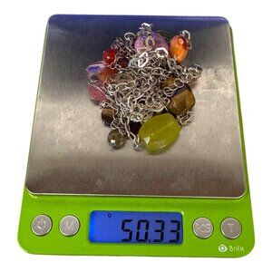 This exquisite multi-layered necklace combines the elegance of sterling silver with the vibrant hues of various gemstones. Transform any outfit with its unique design and craftsmanship. The necklace's versatility makes it a valuable addition to any jewelry collection, offering elegance and style.