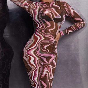 Multi Mesh Swirl Bodycon Midi Dress.
