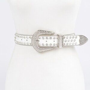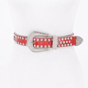 Elevate your look with the Multi Metal Stone Studded Belt, a striking mix of shine and structure. This belt features a series of metallic studs and rhinestone accents across a flexible polyurethane-elastic band. The sleek buckle adds a refined finish, making it the perfect addition to jeans, dresses, or outerwear. Add instant edge and glamour to your ensemble with this statement-making piece.