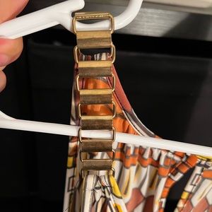 Short Sleeve Dress with Keyhole Opening with Chain Link Straps. Worn but in Good Condition