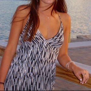 Express maxi sundress, deep V neck line, crisscross straps with open back. High front low sides